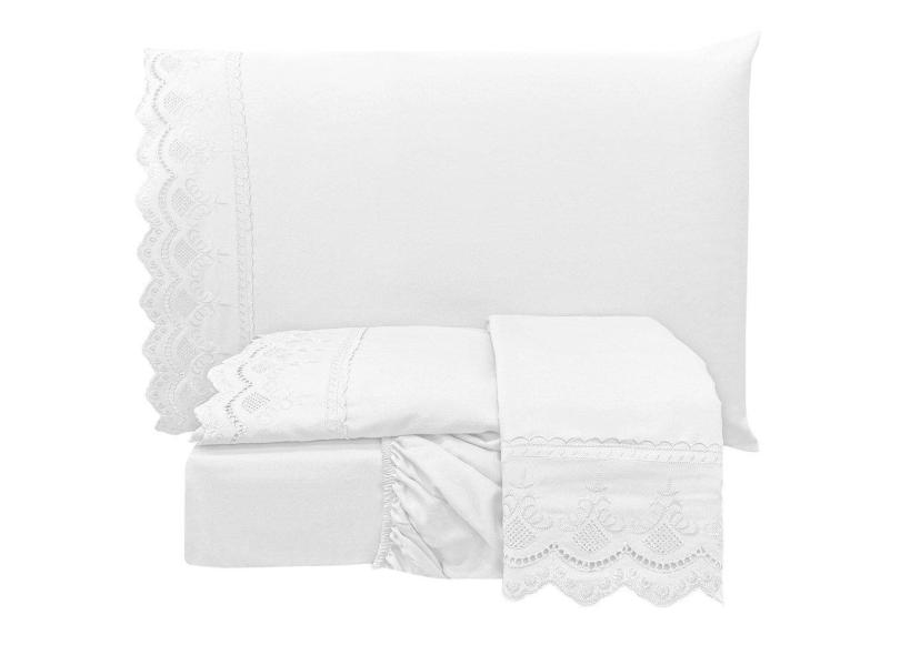 Jogo Cama Lençol Loren Queen Bordado Inglês Micro Percal 300 Fios 4 Peças - Branco