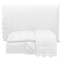 O menor preço encontrado no Brasil para Jogo Cama Lençol Loren Queen Bordado Inglês Micro Percal 300 Fios 4 Peças - Branco atualmente é R$ 228,72.