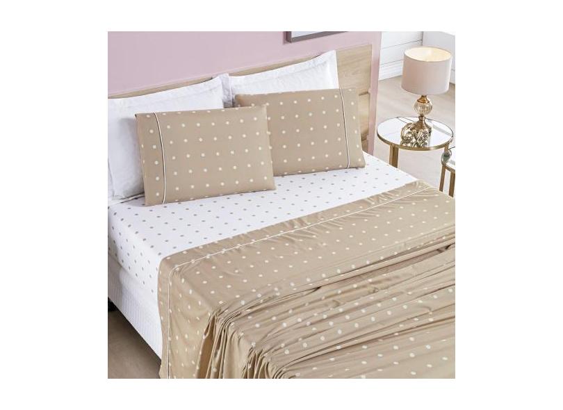 Jogo Cama Lençol Meggy Poá Casal Padrão Bolinhas Micropercal 200 Fios