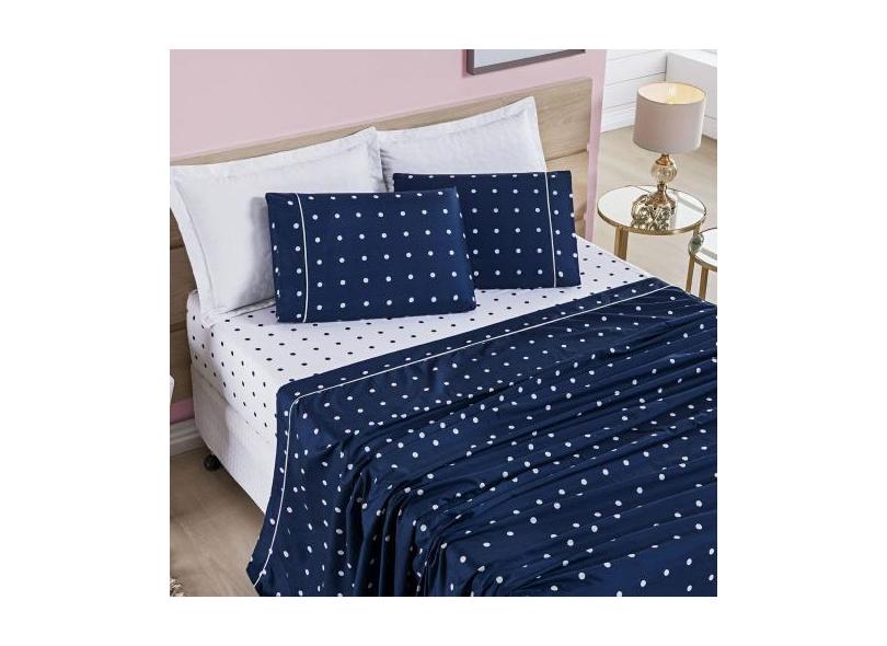 Jogo Cama Lençol Meggy Poá King Bolinhas Micropercal 200 Fios 4 Peças