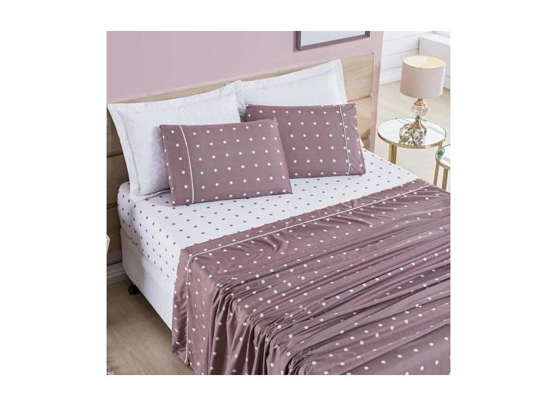 Jogo Cama Lençol Meggy Poá Queen Bolinhas Micropercal 200 Fios 4 Peças