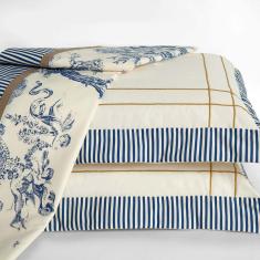O menor preço encontrado no Brasil para Jogo Cama Lençol Nobreza Queen Percal 180 Fios 04 Peças - Palha Com Azul atualmente é R$ 327,80.