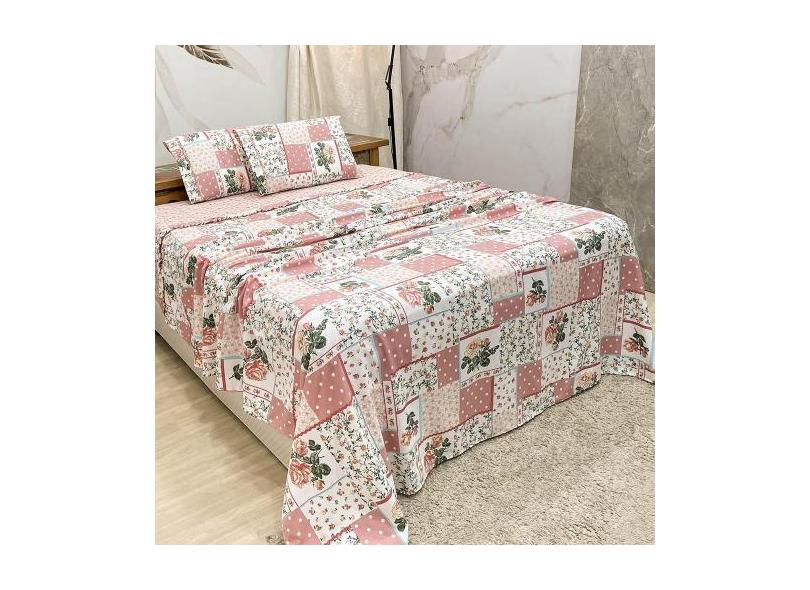 Jogo Cama Lençol Queen Colonial Percal 300 Fios 4 Peças Rosa - Casa Sh
