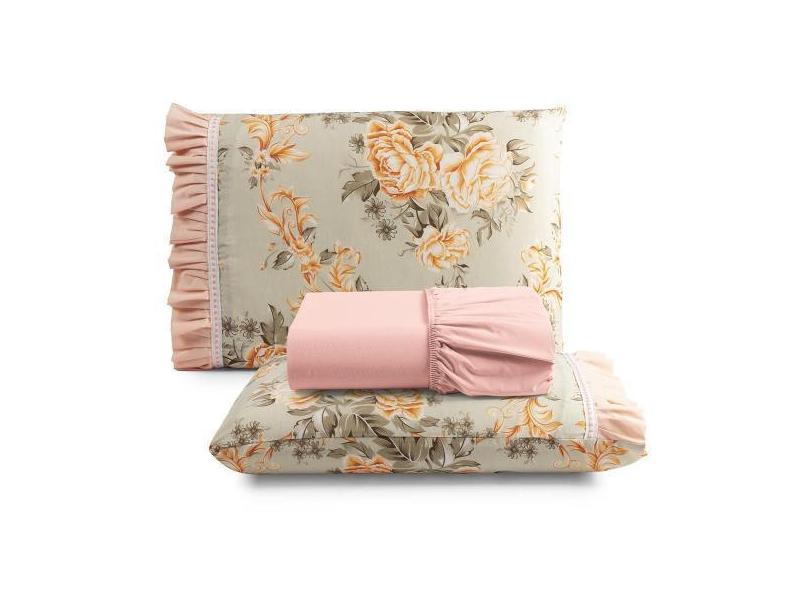 Jogo Cama Lençol Queen Minuano 100% Algodão 3 Peças - Rosê - Casa Show