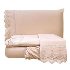 Jogo Cama Lençol Queen Supremo Micropercal 300 Fios - Rosê - Casa Show