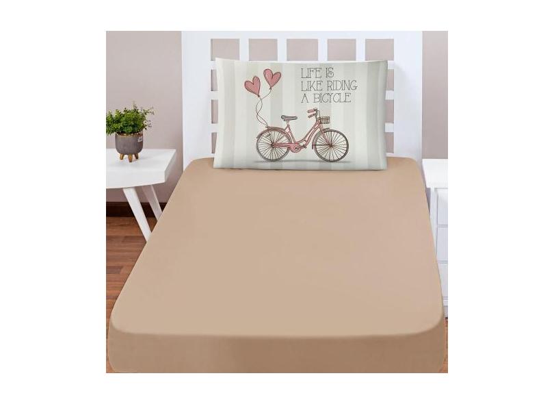 Jogo Cama Lençol Shine Solteiro 2Pçs Vintage Bike Bege - Casa Scarpa
