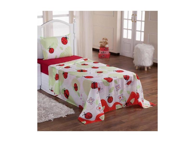 Jogo Cama Lençol Solteiro Alegria 2 Pçs Joaninha - Vermelho - Casa Sho