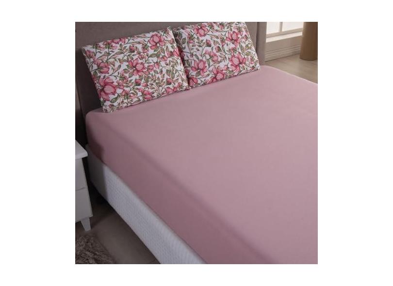 Jogo Cama Lençol Sonnet Casal Padrão Malha Estampada 100% Algodão 3 Peças - Flores - Rosê