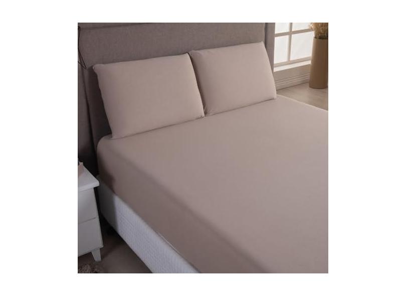 Jogo Cama Lençol Sonnet Casal Padrão Malha Lisa 100% Algodão Macio 3 Peças - Avelã