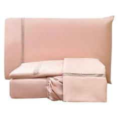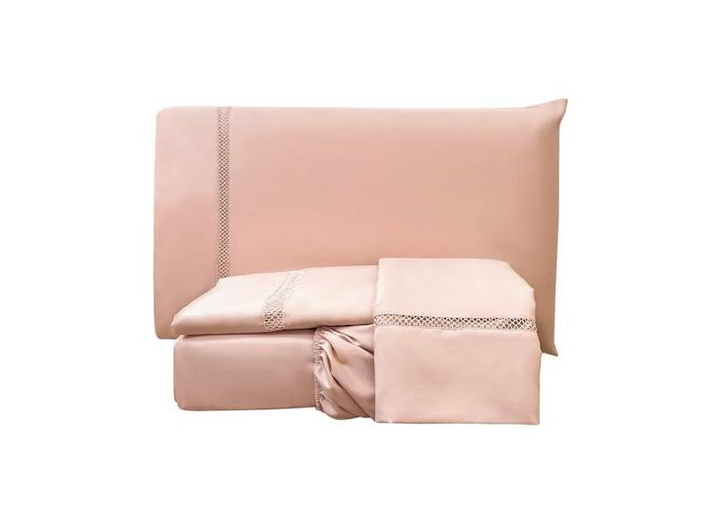 Jogo Cama Lençol Trento Casal Padrão Guipir Micro Percal 300 Fios c/Ponto Infinito 4 Peças - Rosê
