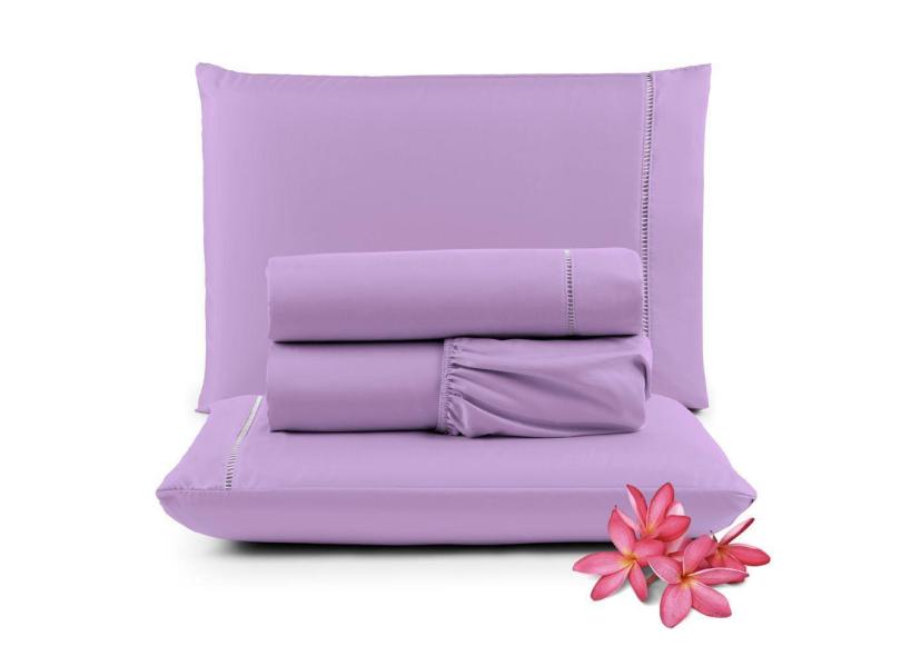 Jogo Cama Lençol Unique Casal Padrão 400 Fios Ponto Palito 4 Peças - Lilás