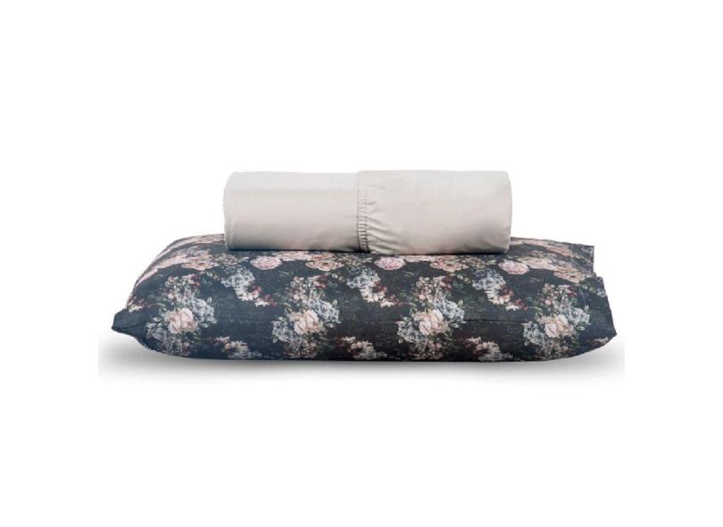 Jogo Cama Lençol Verace Solteiro Percal 300 Fios c/ Fronha Estampada 2 Peças - Cáqui