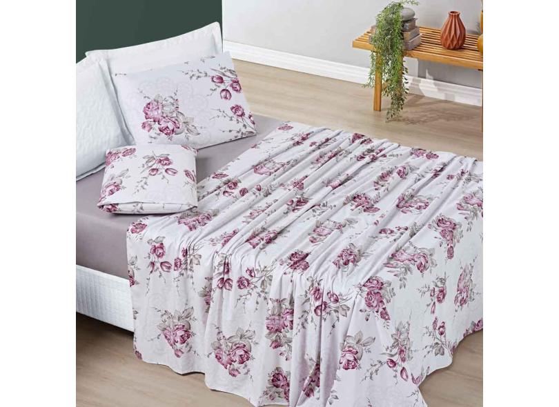 Jogo Cama Micropercal Casal 200 Fios - Palha Florido