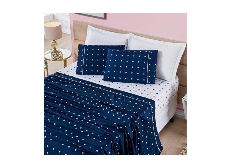 Jogo Cama Solteiro Petit Poá 200 Fios 3 Peças Marinho - BIA ENXOVAIS