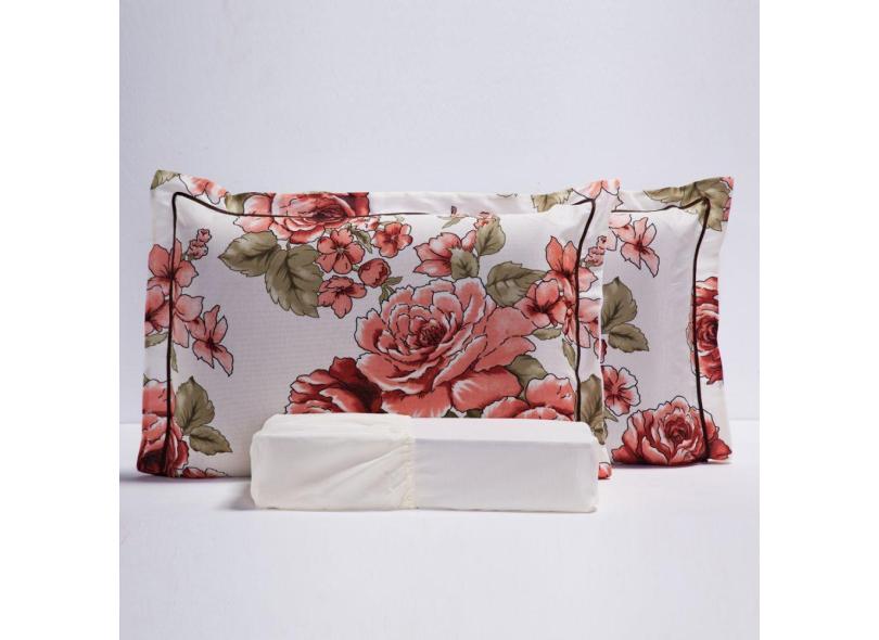 Jogo Cama Vitória Floral Palha Queen 03 Peças 120 Fios