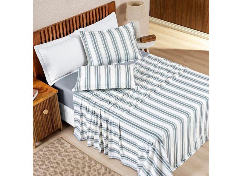 Jogo De Cama 100% Algodão Marin Queen 04 Peças Cinza
