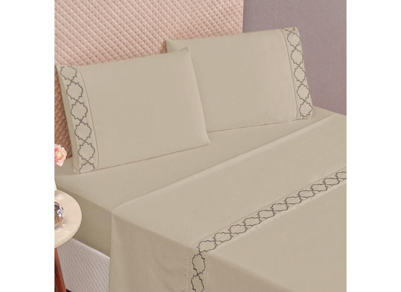 Jogo De Cama 300 Fios Bordado Queen Infinity 04 Peças Cáqui