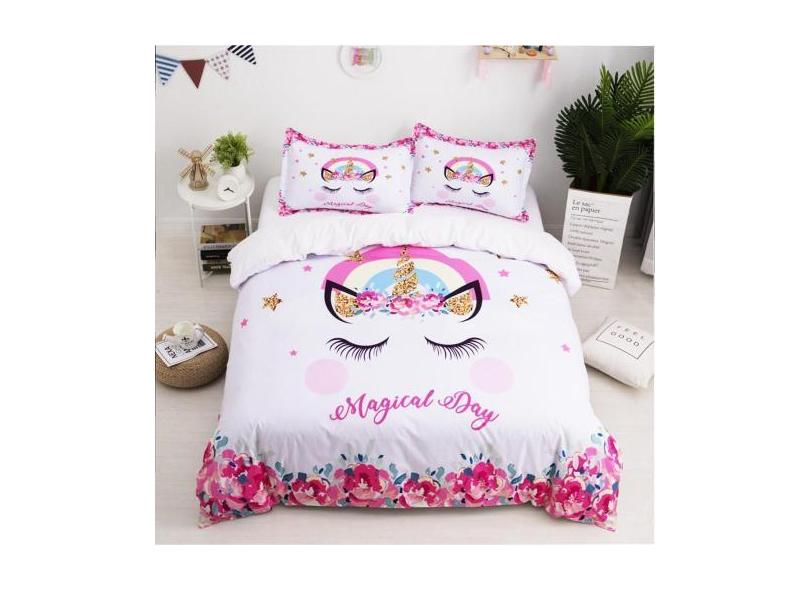 Jogo De Cama 4 Peças Casal Queen Unicórnio 260X260cm - Espaço Casa Cen