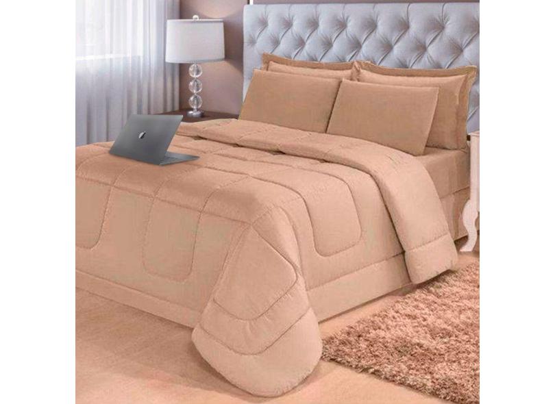 Jogo de Cama 6 Peças Aconchego Dupla Face Casal Queen Bege Casa Dona