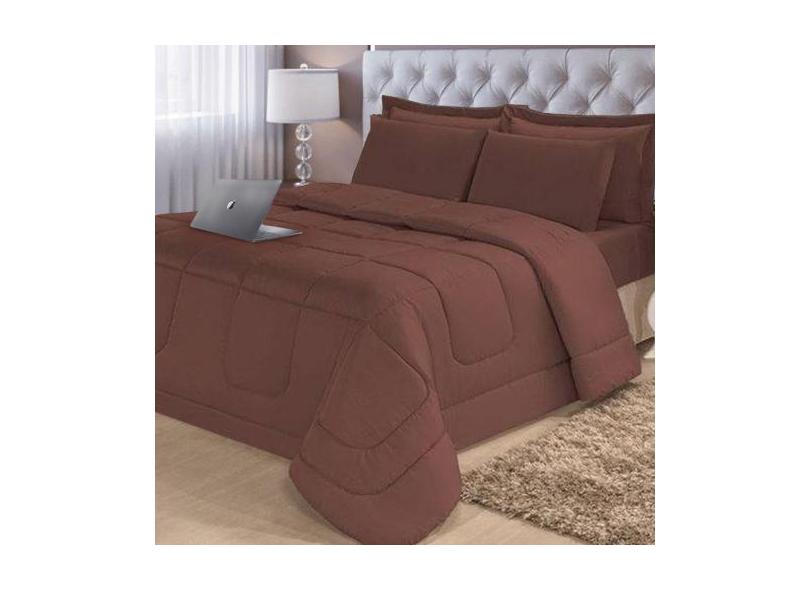 Jogo de Cama 6 Peças Aconchego Dupla Face Casal Queen Tabaco Casa Dona