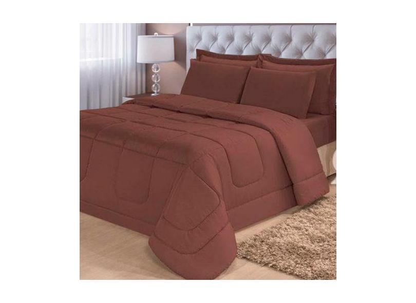 Jogo de Cama 6 Peças Dupla Face Casal Queen Tabaco Casa Dona