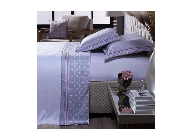 Jogo De Cama Atrina Branco/Cinza Queen 04 Peças - Micropercal 180 Fios