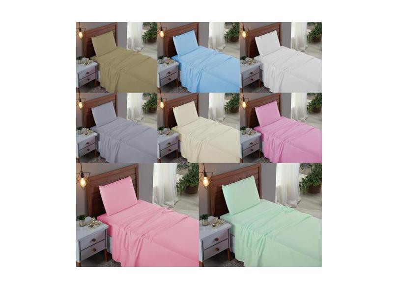 Jogo De Cama Box Solteiro 03 Peças Liso 100% Algodão Linha Prime Perca