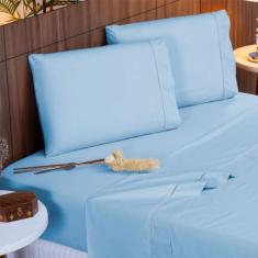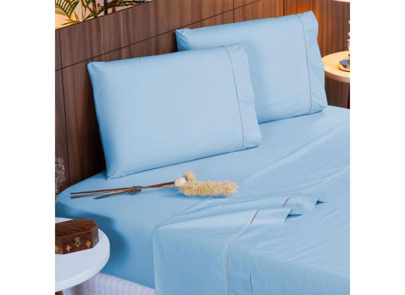 Jogo de Cama Casal 140 fios Ponto Palito Azul Valle Enxovais 4 peças