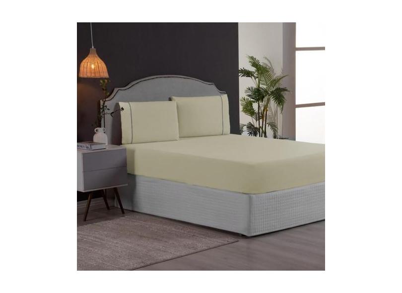 Jogo de Cama Casal 3 Peças Percal 200 Fios com Ponto Palito Lençol com