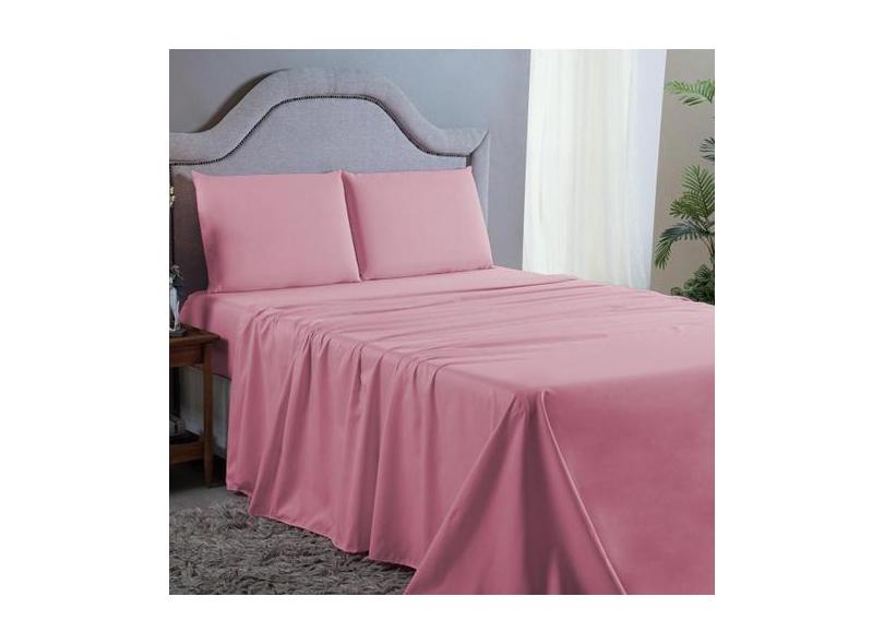 Jogo De Cama Casal 4 Pç Percal Microfibra 400 Fios Salmão - Bordando E