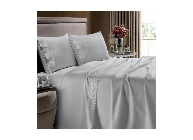 Jogo De Cama Casal 4 Peças Com Aplicação De Renda 400 Fios - Casa Blan