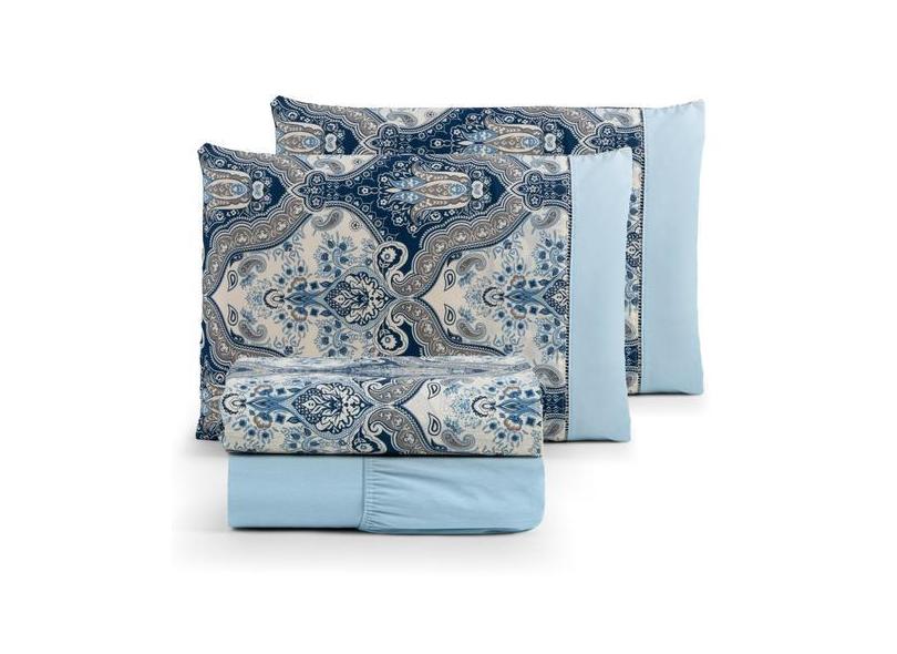 Jogo de cama Casal 4pç estampado ponto palito 100% agodão - SAFIRA ENX