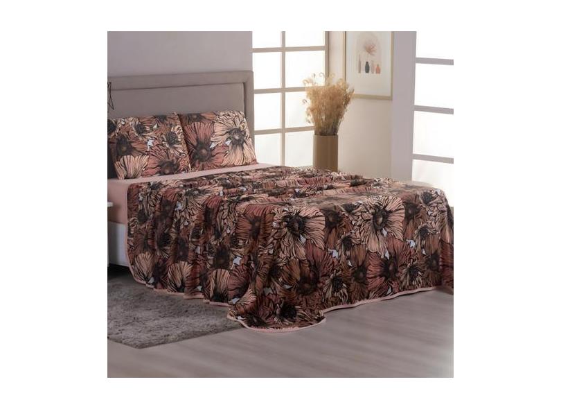 Jogo De Cama Casal Algodão Malha Macia E Resistente Estampado 04 Peças