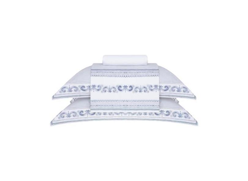Jogo de Cama Casal Cetim 300 Fios Buddemeyer Bud Vision Mykonos 100% Algodão Penteado Estampado 4 peças