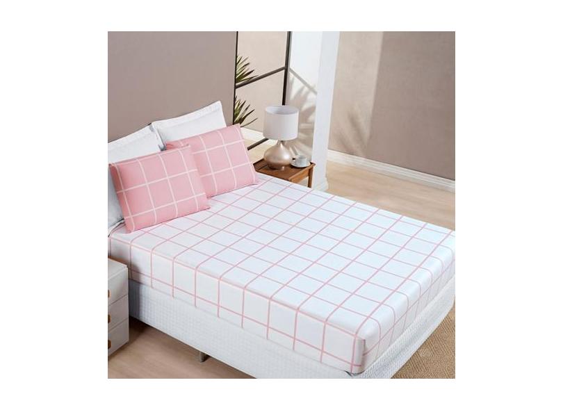 Jogo De Cama Casal Dupla Face Grid Micro Percal 200 Fios Austin 3 Pçs