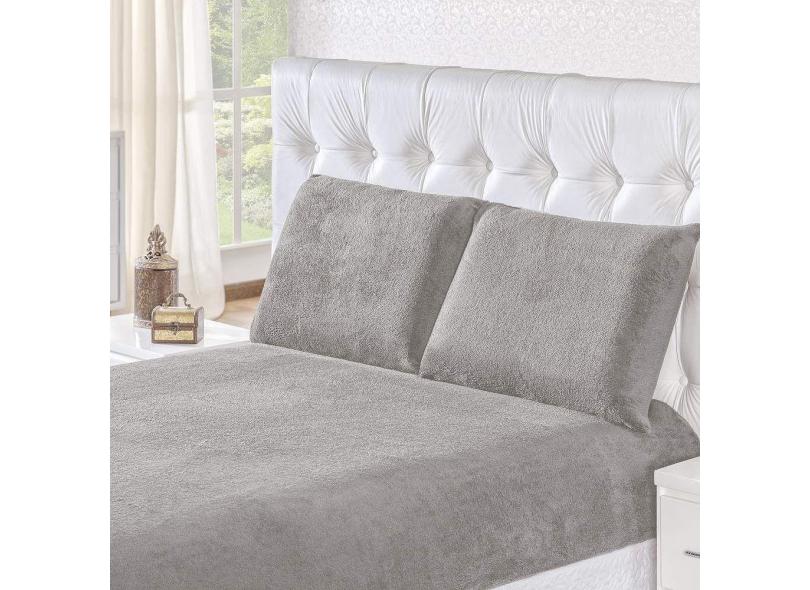 Jogo De Cama Casal Inverno Manta Flannel 3 Pç - Cinza