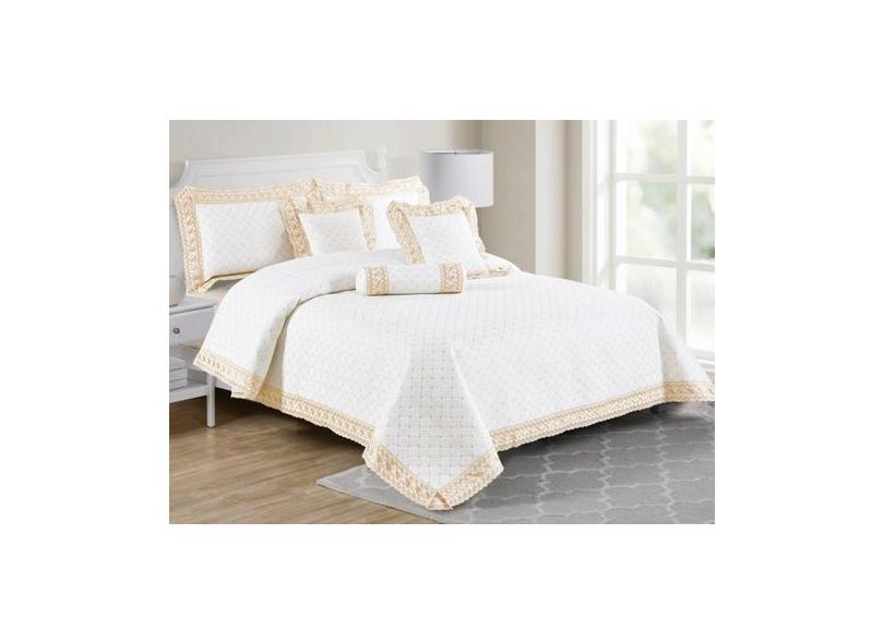 Jogo De Cama Casal King Size Crystal Bordada Colcha Royale 100% Algoda