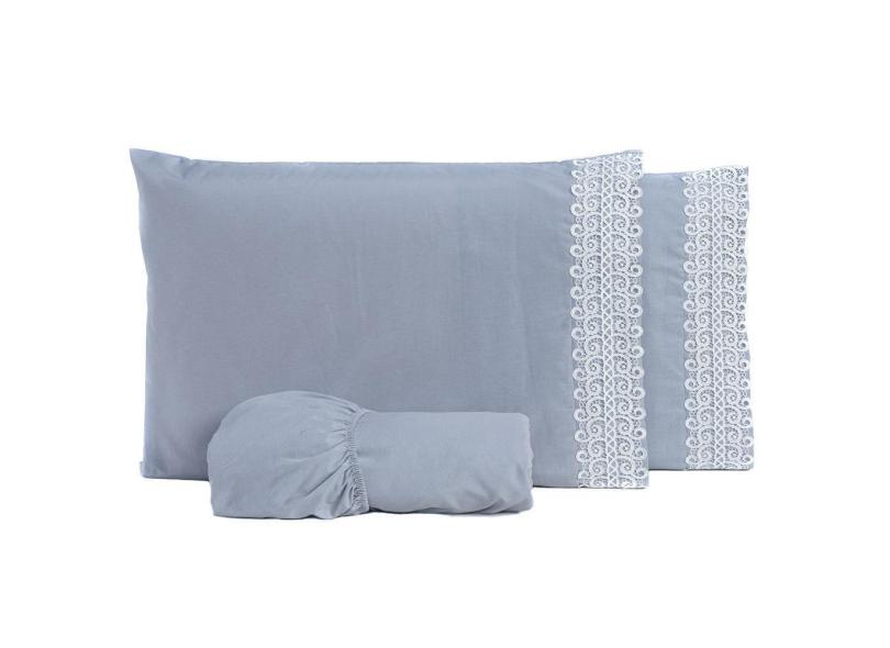 Jogo De Cama Casal Padrão 03Pçs Percal Liso 200 Fios Cinza