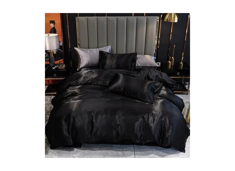Jogo De Cama Casal Queen Cetim 7 Pç Completo Preto C/Prata - Casa Da F