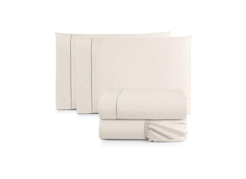 Jogo de Cama Casal Queen Percal 400 Fios Ponto Palito 04 Peças, Antiácaro, Não faz bolinha Toque Extra Macio (Palha)