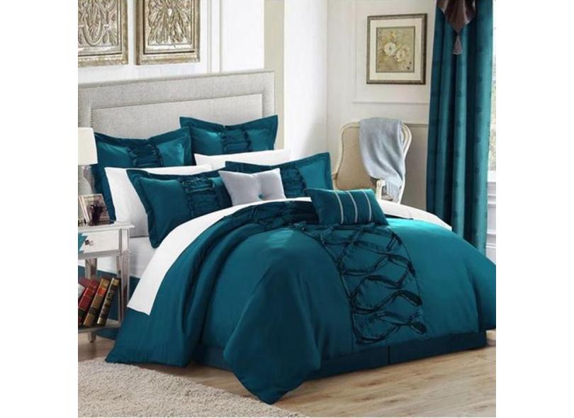Jogo De Cama Casal Super King 11 Pç Suede E Percal 300 Fios