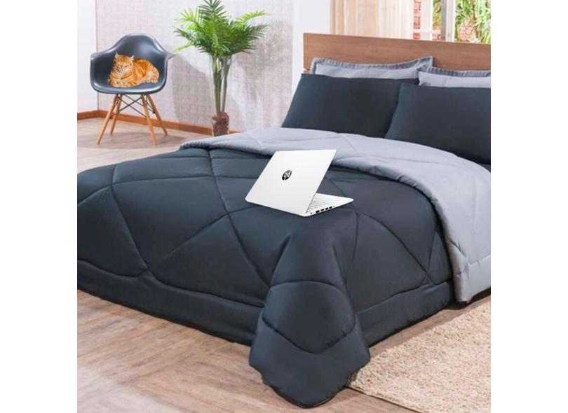 Jogo de Cama com 6 Pçs Aconchego Casa Dona Dupla Face Casal Queen Preto e Cinza