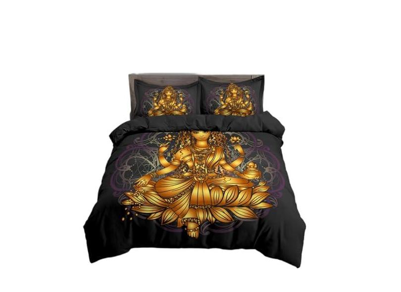 Jogo de cama com estampa de estátua de Buda 3D, capas de edredom de meditação com capa de travesseiro, roupas de cama de casa Queen King Size budismo, capa de colcha têxtil para crianças (total dos