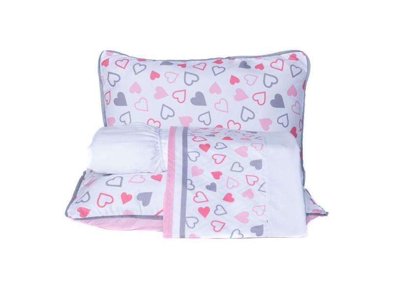 Jogo de Cama Corações Branco Queen 04 Peças - Micropercal 180 Fios
