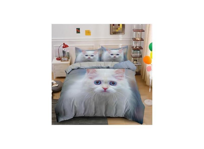 Jogo de cama de gato 3D, capa de edredom de animais de luxo com fronha, cenário de flores, capas de colcha de gato fofo, King Queen, casal casal, têxtil para crianças, roupa de cama com travesseiro