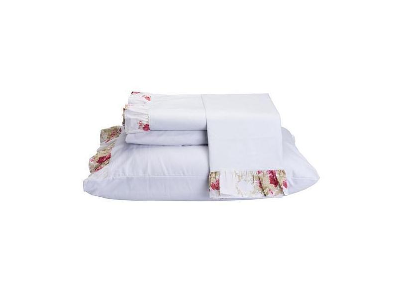Jogo De Cama Estampado Floral 100% Algodão Percal 150 Fios Casal Queen