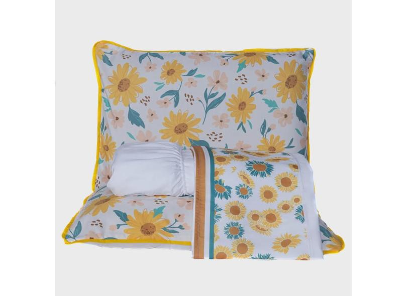 Jogo de Cama Girassol Branco Queen 04 Peças - Micropercal 180 Fios