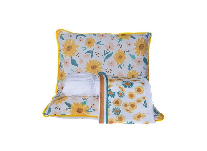 Jogo De Cama Girassol Branco Solteiro 03 Peças - Micropercal 180 Fios
