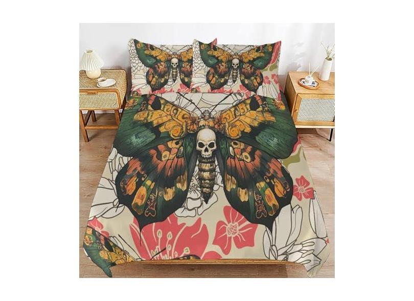 Jogo de cama gótico, solteiro, Queen King, tamanho casal, esqueleto, caveira, edredom para amantes, crianças, adolescentes, meninas, homens, mulheres, decoração de quarto, borboleta, aconchegante,