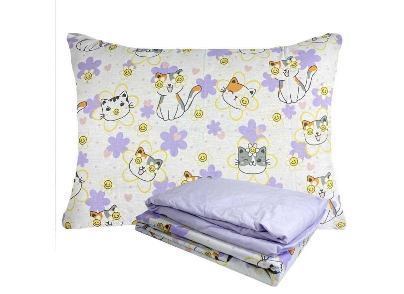 Jogo de Cama Infantil 100% Algodao Solteiro 3 Peças Estampado Gatinhos Miau Lepper